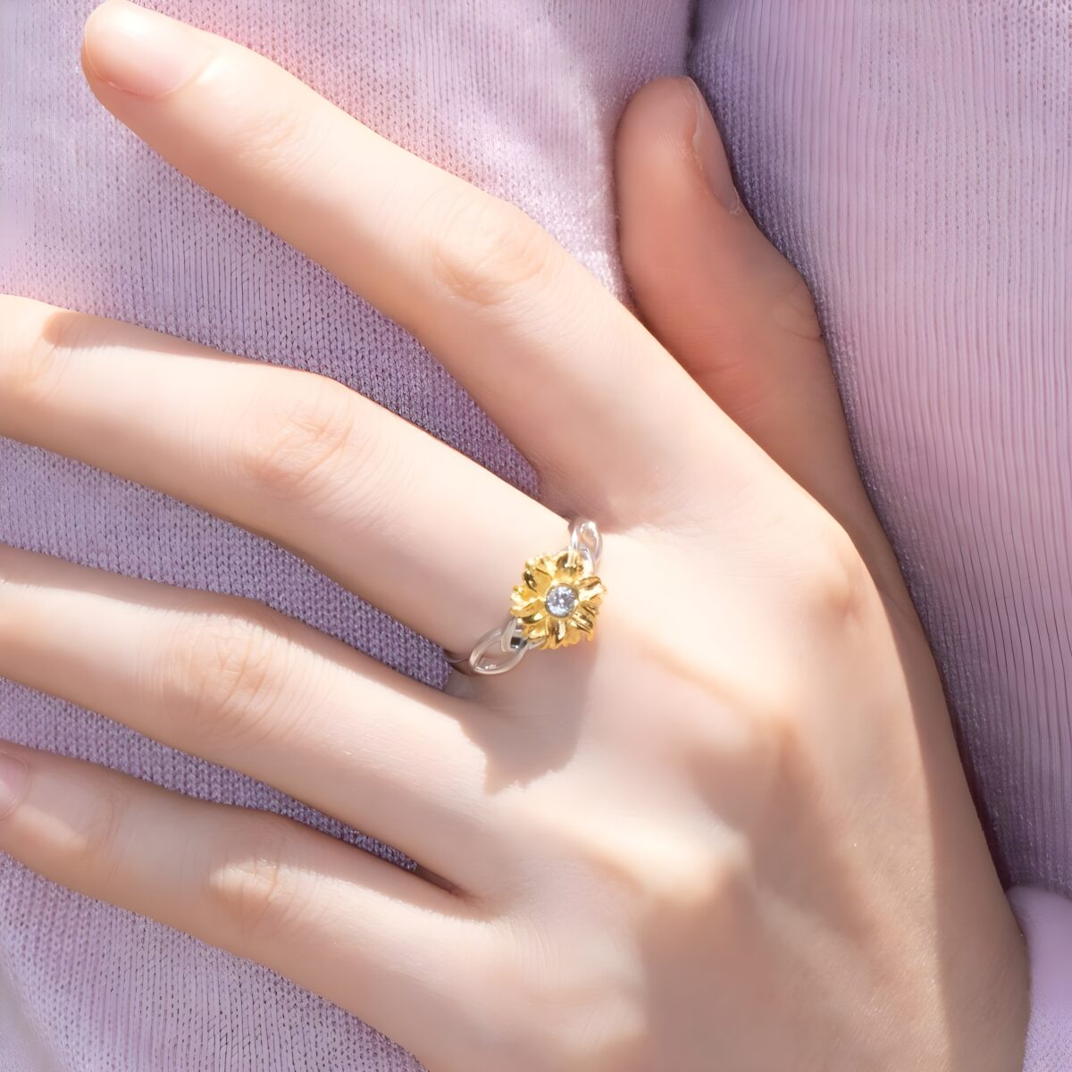 This sunflower ring embodies warmth and optimism, making it more than just jewelry — it’s a symbol of love and encouragement. Its personalized design ensures it resonates deeply with the wearer’s spirit, becoming a cherished keepsake for years to come, crafted the Eolante Way.