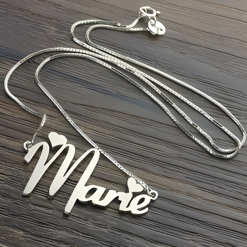 Celebrate the unique beauty and spirit of someone dear with a delicate heart-shaped name necklace crafted in sterling silver. This necklace is more than an accessory; it’s a meaningful expression of identity and affection, designed to be worn close to the heart.