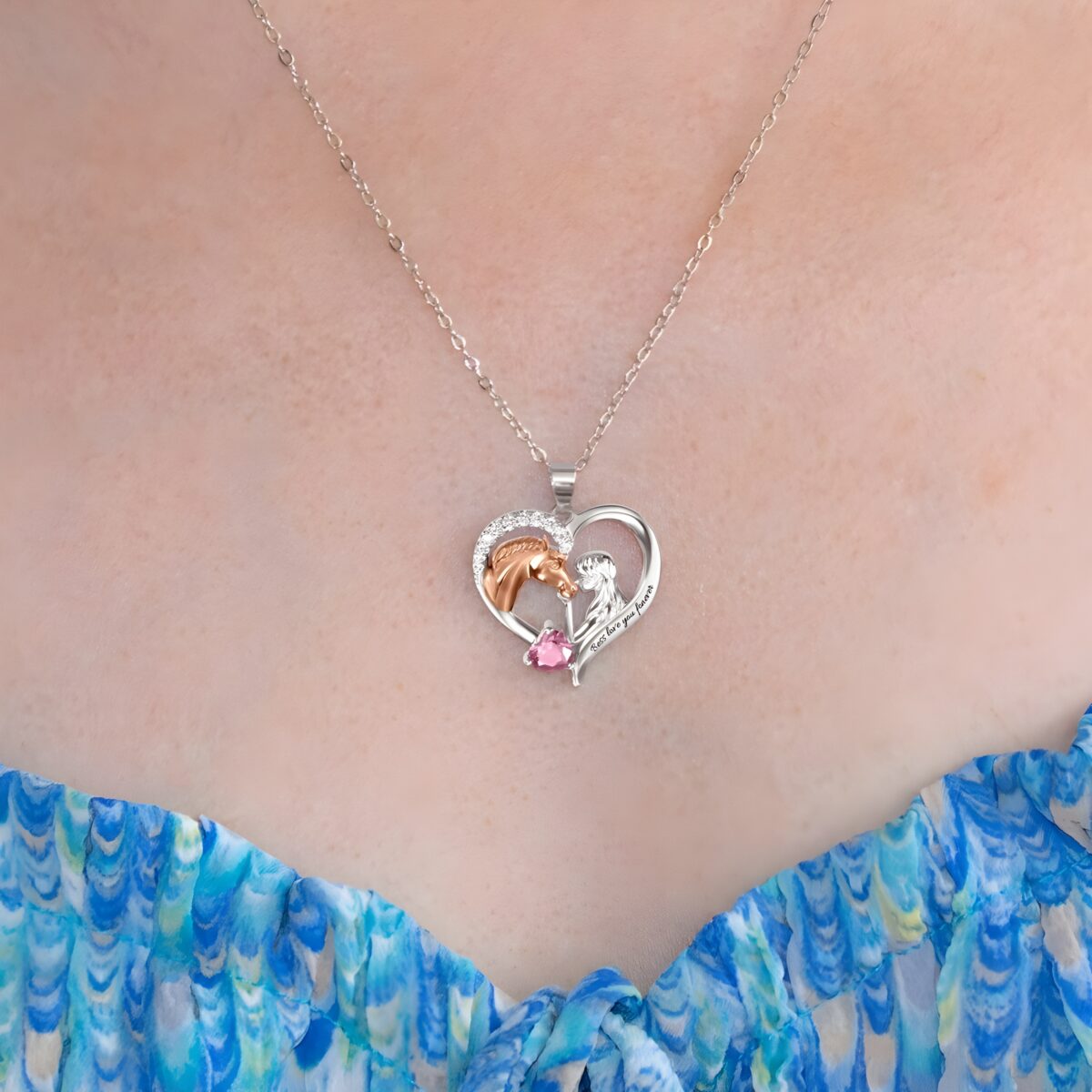 Embrace the Bond – Heart Necklace with Horse & Girl Charm – For Those Who Cherish Love and Loyalty