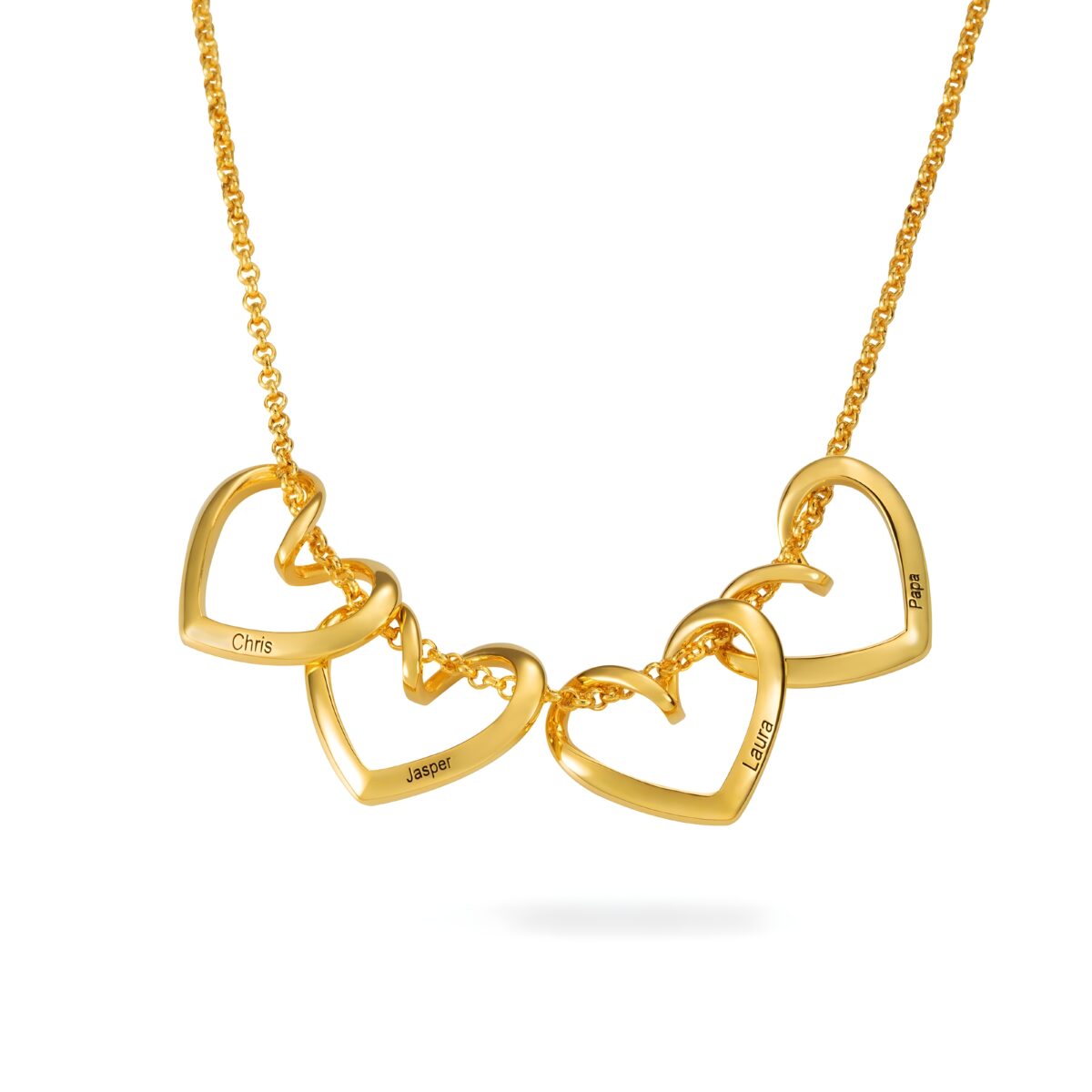 This necklace is a tender tribute to the unbreakable ties that bind your heart to those you cherish most. Crafted to hold 1 to 10 names delicately engraved on shimmering hearts, it celebrates the love between family, a mother and child, or a beloved partner. A timeless symbol of connection, it carries your story wherever you go.